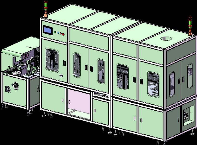 為方便維修、調(diào)試,由多臺獨(dú)立設(shè)備組合成線體方式,從線材剝線加工,經(jīng)整角后,將芯片與線材組裝后進(jìn)行浸錫焊接,將焊接完成后的產(chǎn)品堆疊收料。